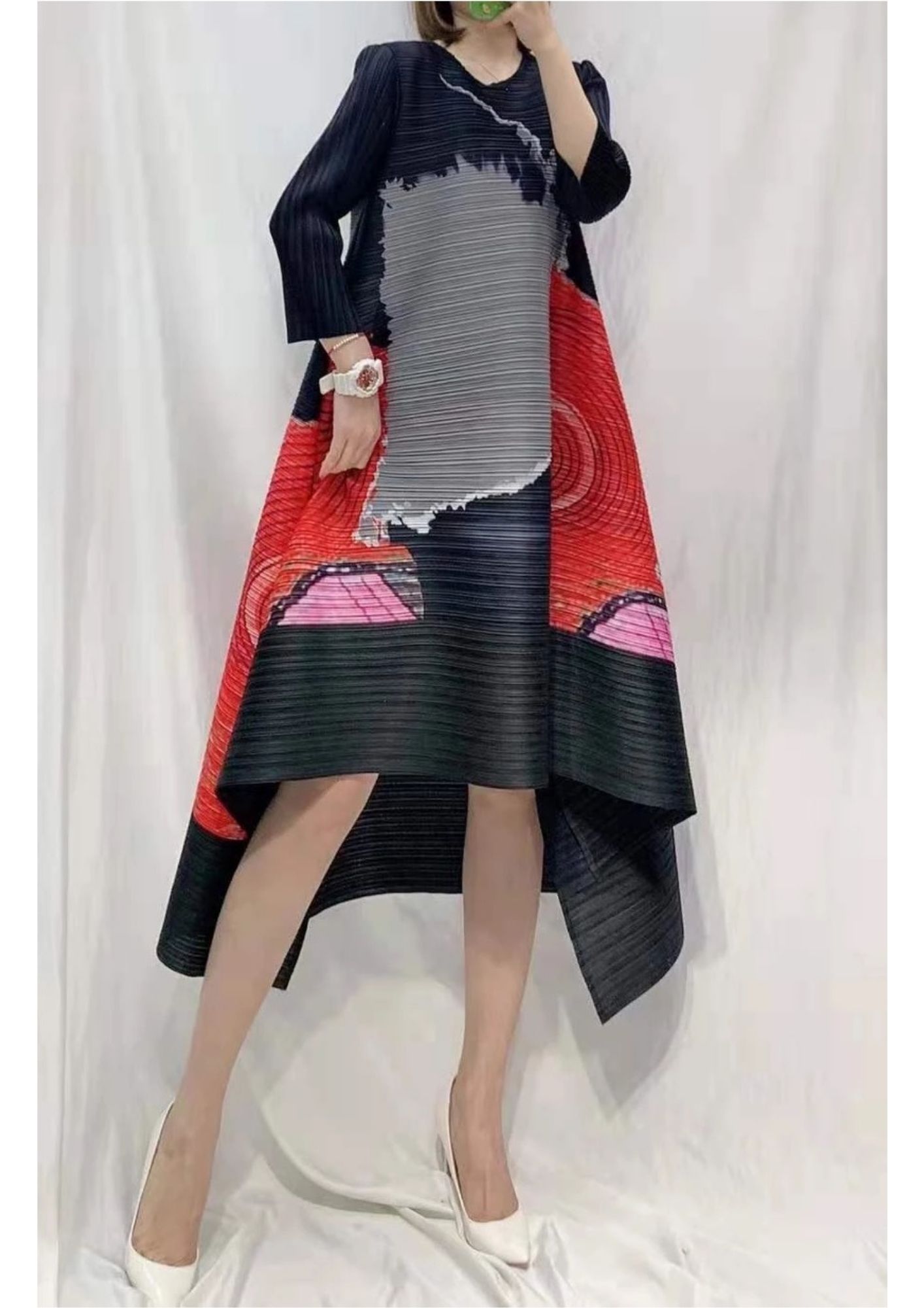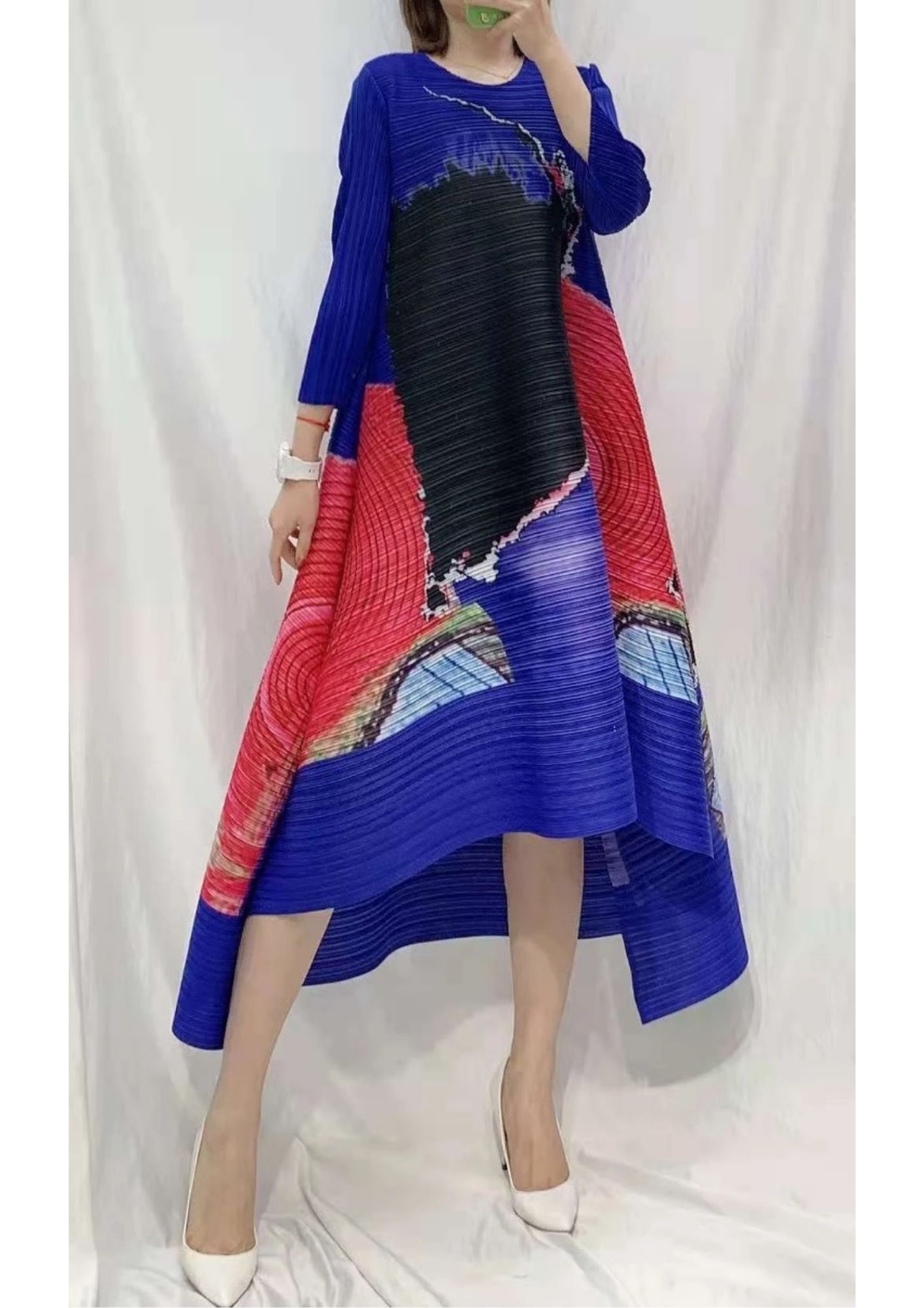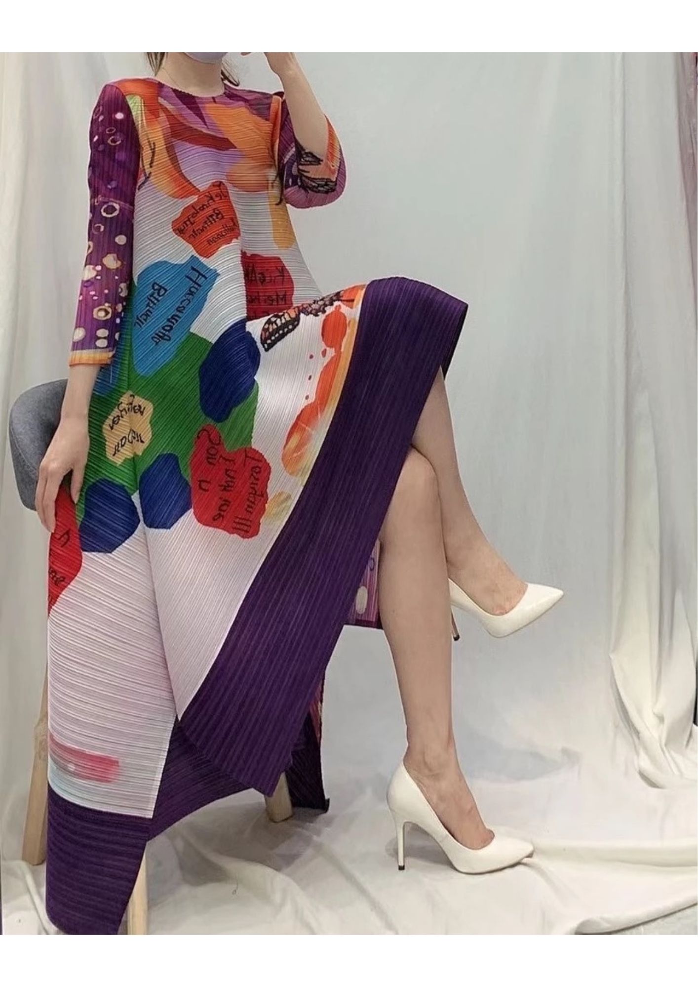 This pleated loose print dress is easy to wear and perfect for the busy professional. It offers effortless elegance with minimal effort.